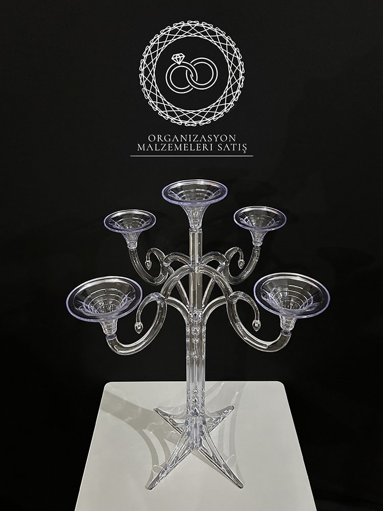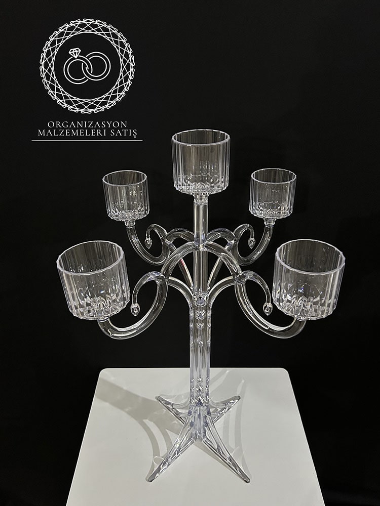Pleksi 5 Kollu Mumlu Şamdan.